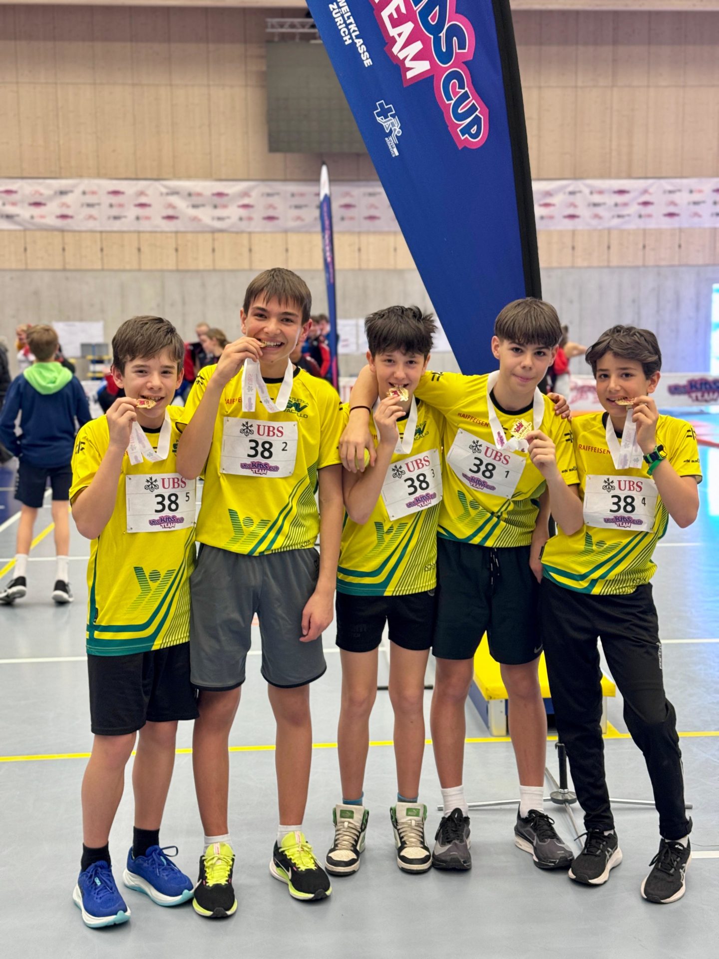 Nella splendida struttura della SportHalle Tellenfeld, sabato erano quasi 600 i ragazzi e le ragazze che si sono sfidati nelle avvincenti prove della finale nazionale UBS Kids Cup Team. Tra le 144 squadre che hanno lottato, selezionate dopo 21 eliminatorie locali e 6 finali regionali, c’erano sei squadre ticinesi al via. I ragazzi della SAV Vacallo, dopo aver vinto la finale regionale, hanno alzato l’asticella conquistando anche la finale nazionale: riportano così in Ticino un successo che mancava dal 2017, quando la formazione U16MIX del SAB aveva difeso il titolo conquistato l’anno prima. Il quintetto gialloblu avrà il privilegio di gareggiare in una staffetta 5×80 m, calcando la mitica pista del Letzigrund in occasione del Weltklasse Zürich.